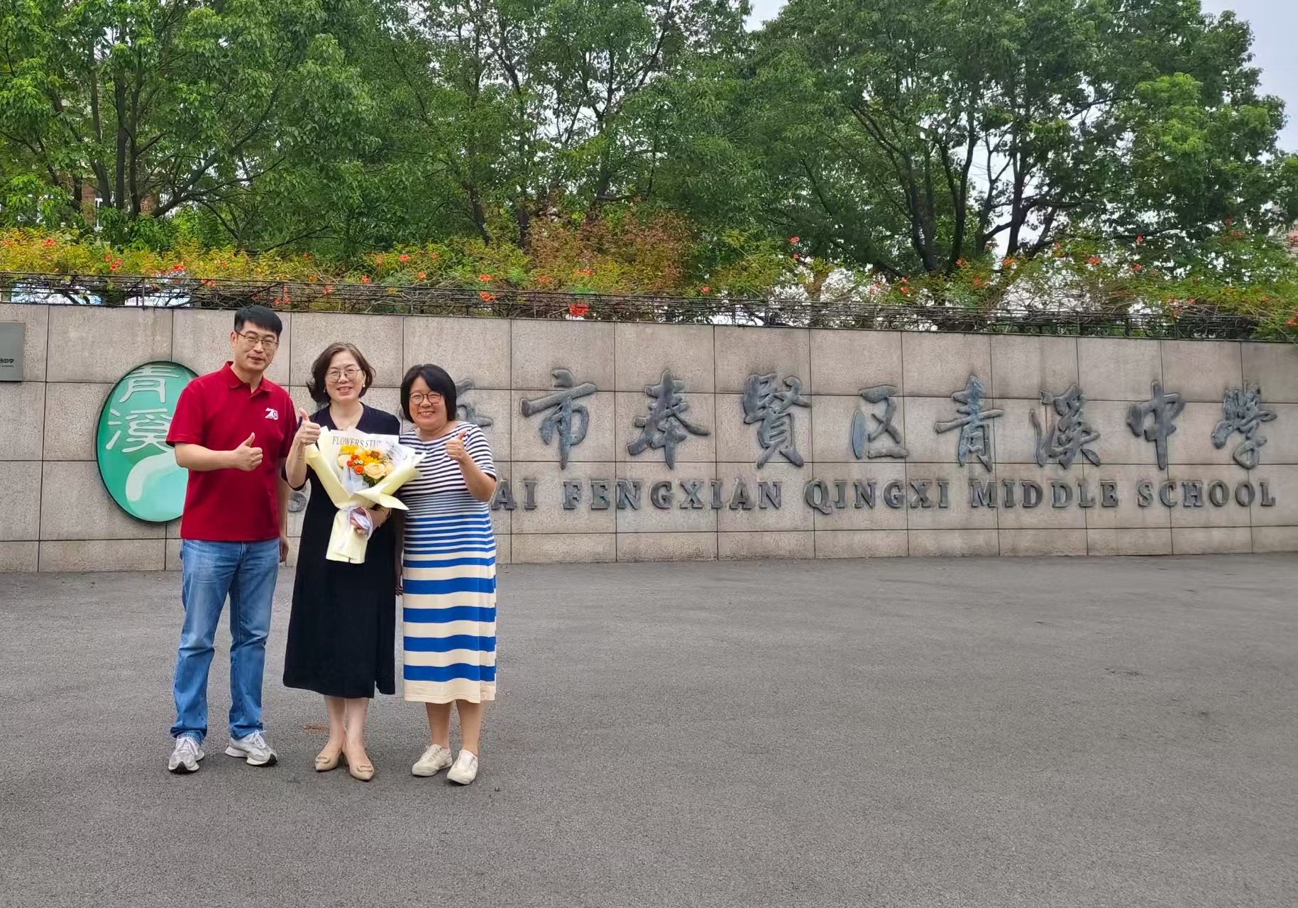 9月10日,外国语学院党委副书记、副院长臧艳雯与学院2022级辅导员胡志彬赴奉贤青溪中学走访学院1987级校友、青溪·青村联合中学党总支书记薛晨红,学院2009级校友、青溪中学英语教研组组长汪婷婷,为奋战在教育一线的校友送上了教师节的祝福。