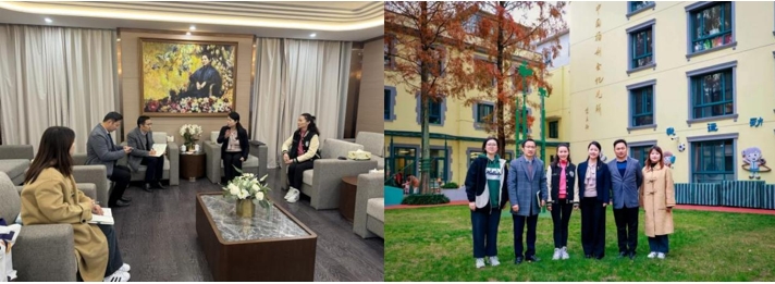 12月4日,学院党委书记杨成龙,党委副书记、副院长周泽龙,毕业班辅导员王丹娜和兼职辅导员乔扬赴中国福利会托儿所走访交流,与中国福利会托儿所党总支书记、副所长许敏霞进行座谈交流并看望就职于托儿所的2024届校友陆雯婷。许敏霞介绍了中国福利会托儿所的师资培养、教学特色、办园规模,对学院为园所输送稳定的优秀人才以及在青年教师和校友的职前职后培养方面所提供的帮助表示感谢,并介绍了2025年的招聘需求和计划。杨成龙介绍了学院发展定位、学科建设、人才培养等方面的相关情况,希望双方能够加强党建工作、科研创新、人才培养的合作交流,进一步加强交流互访、探索合作机遇、促进共同发展。