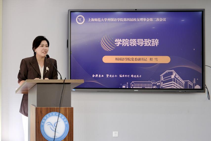 会议伊始,程雪代表学院致欢迎辞,诚挚感谢各位校友的到来以及长期以来对学院发展的关心与支持。她指出,学院69年的坚实根基,离不开前辈校友们在教育、外贸、外交领域的深耕与开拓并强调“外语人”是镌刻在每个人身上的终身标签,无论毕业多久,学院永远是校友的家,而校友的每一份荣耀,都是学院最珍贵的宝藏。