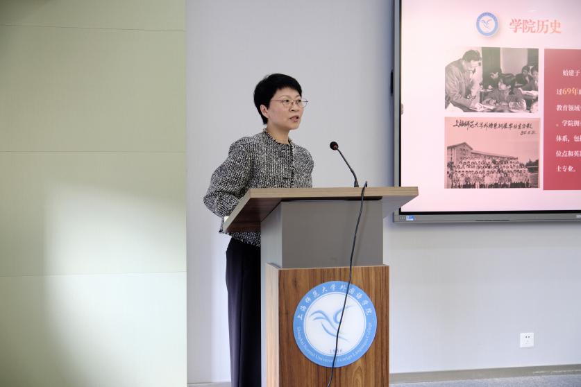 宋学东从学院概况、学科建设与专业发展、国际交流与合作以及社会服务贡献四个维度,全面系统地介绍了学院的办学基础和综合实力,重点凸显了国家级一流专业建设、国际合作平台搭建等关键成果。在此基础上,她围绕学术发展与教育合作两大方向,对学院未来发展进行展望。