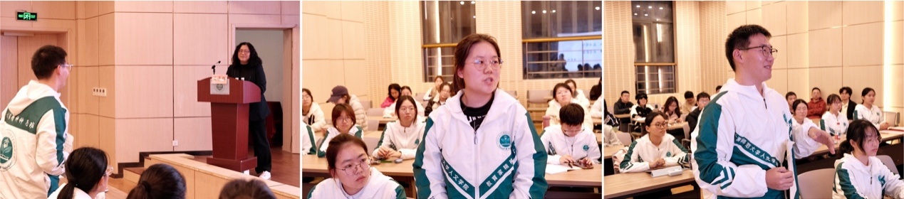 在提问与解答环节,王亦群校长从多读书、多向他人学习、多参与校园活动三个方面专业地回答了如何在大学弘扬教育家精神的问题。面对如何平衡理想追求与现实挑战的提问,王校长希望同学们能让学生“亲其师信其道”的老师,通过更扎实具体的举措、建立良好的师生关系,处理好理想性和现实性的关系。