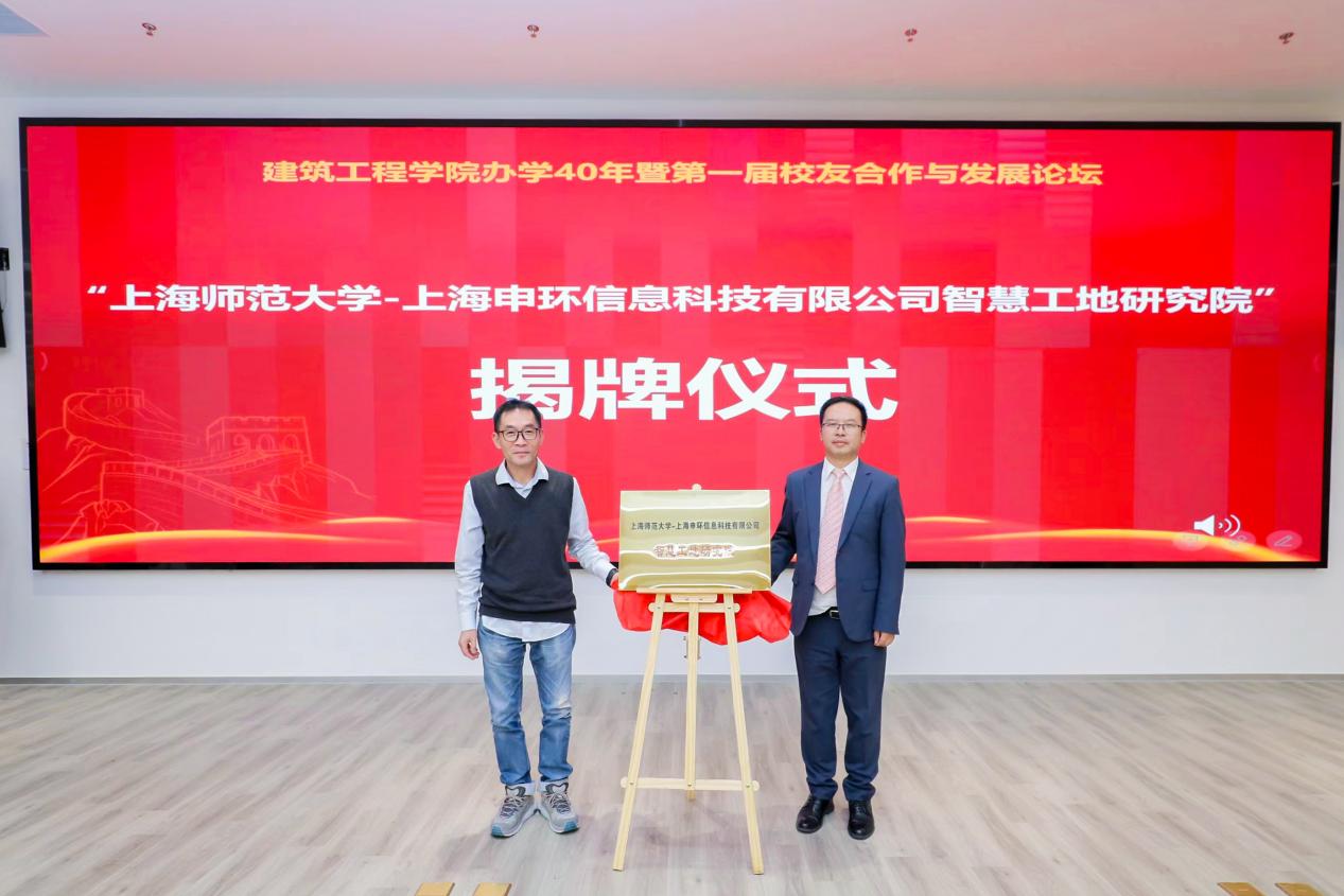 会上还举办了“上海师范大学-万隆建设工程咨询集团有限公司”签约仪式,胡振和贾栋代表双方签约。在随后举行的“上海师范大学-上海申环信息科技有限公司智慧工地研究院”揭牌仪式上,胡振和毛鸣军共同揭牌。