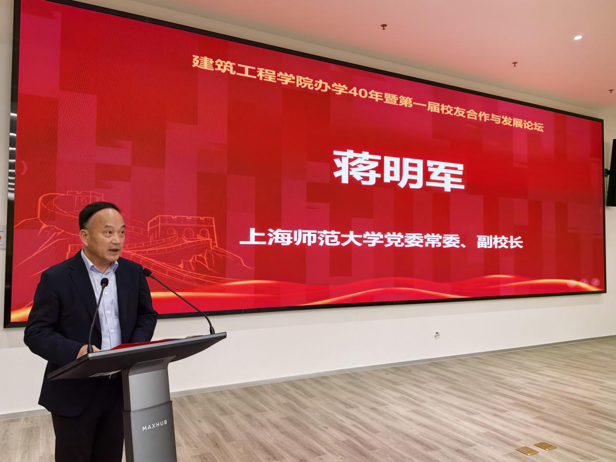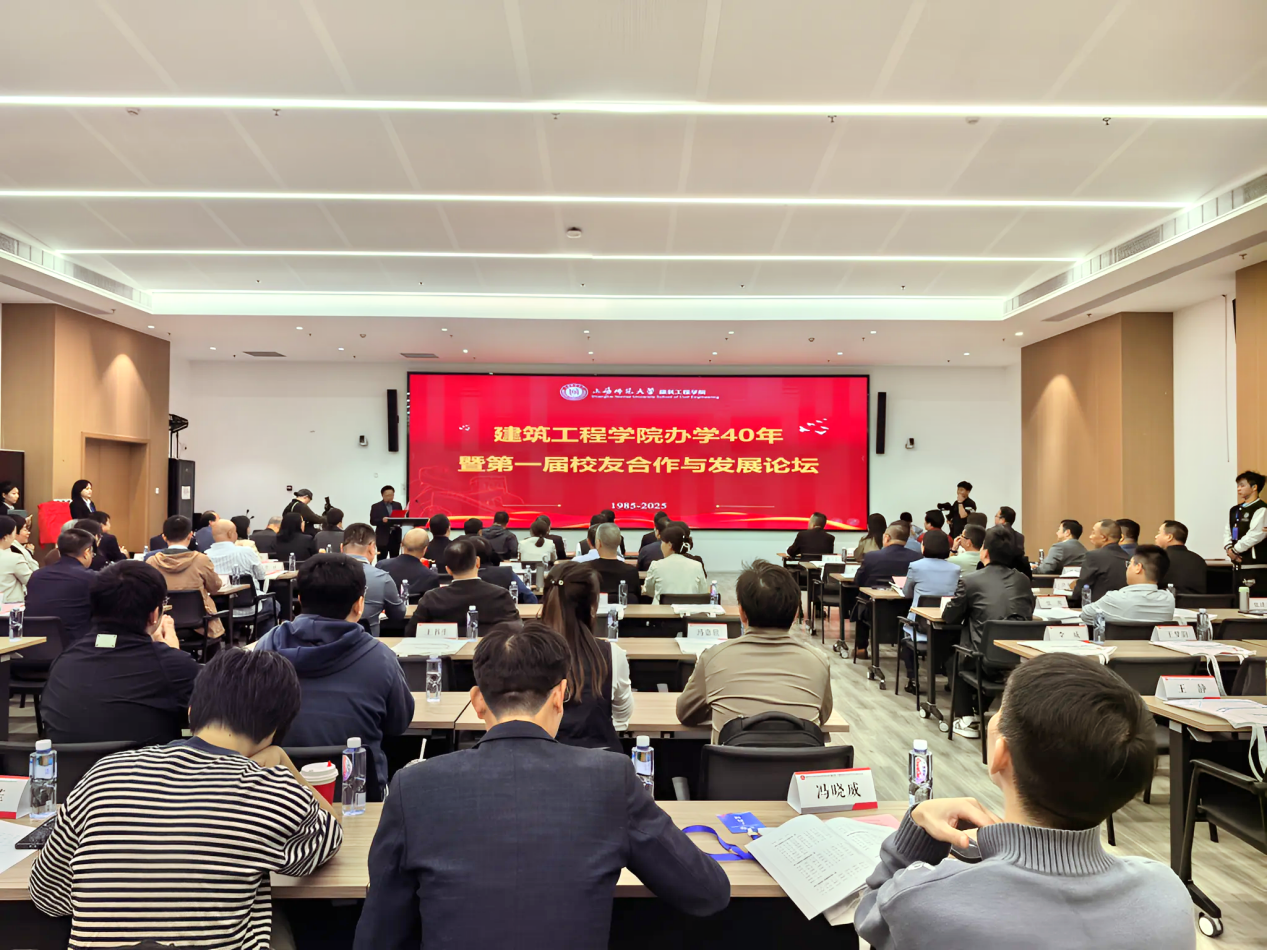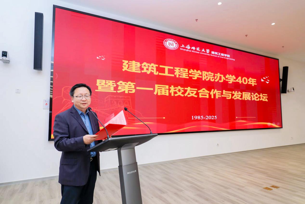 1025日下午,建筑工程学院办学40年暨第一届校友合作与发展论坛在奉贤校区大学生综合发展与现代服务中心举办。上海师范大学党委常委、副校长蒋明军,奉贤校区管委会副主任施家仓;建筑工程学院原党总支书记张惠康、樊连生、徐丰、沈亚芳,原院长张宇鑫,原副院长王小彭、王增忠、蔡泖华;学校办公室副主任张向红、郭勤一;最佳雇主单位代表、上海建工七建集团人力资源部总经理朱剑君;老教师代表,校友代表;建筑工程学院领导班子成员,师生代表参加。大家欢聚一堂,回首四秩芳华,共绘壮阔蓝图。