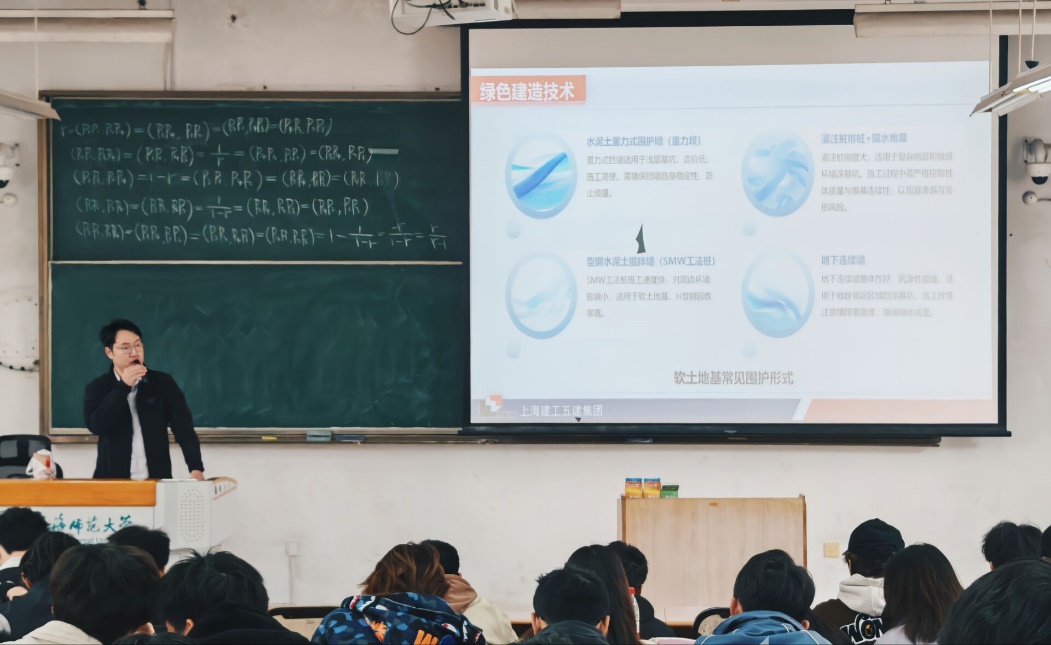 4月2日下午,建筑工程学院2011届优秀毕业生、上海建工五建集团第八工程公司总经理助理高腾应邀回到学院,以“锚定价值坐标 拥抱基建新浪潮——建筑工业化与智能建造技术发展”为主题,在奉贤校区三教102为土木工程专业学生带来了一场精彩纷呈的行业前沿分享。
