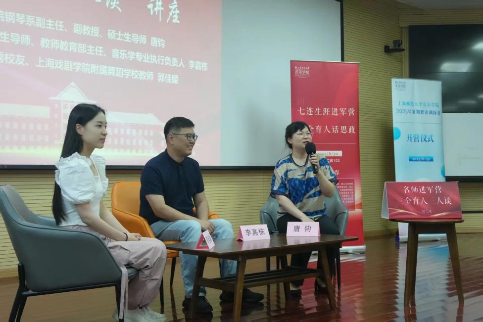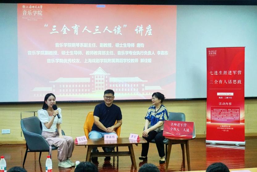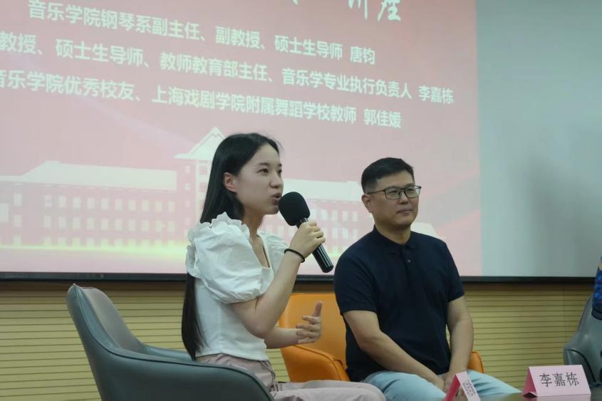 6月30日晚,音乐学院在奉贤校区第二教学楼102教室开展“生涯教育进军营,三全育人话思政”连排活动,优秀校友、上海戏剧学院附属舞蹈学校骨干教师郭佳媛的分享备受关注。本次活动是学院“三全育人三人谈”品牌系列活动之一,而郭佳媛作为从校园走出的优秀代表,以亲切的校友身份,为学弟学妹们带来了满满干货。