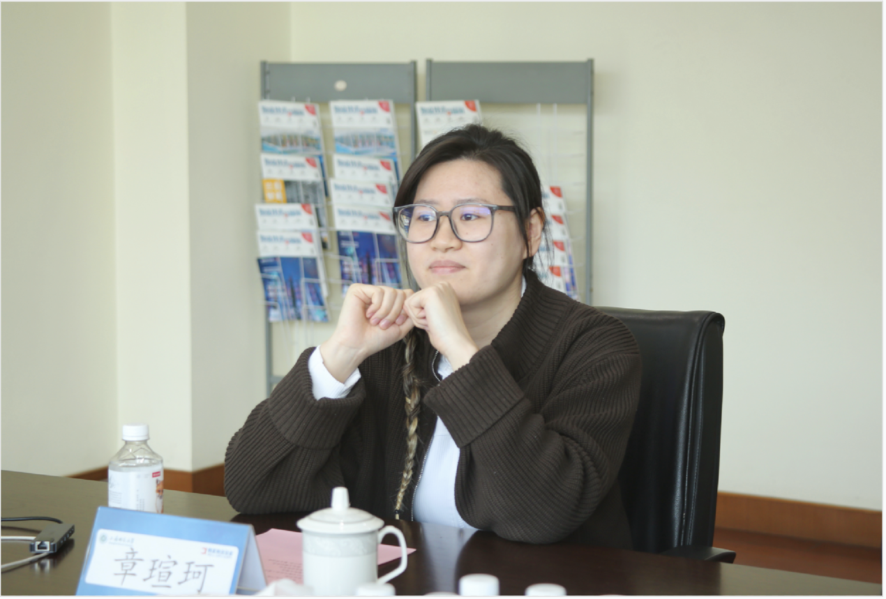 在交流环节,体育学院校友、学院2016级体育教育专业毕业生、公司人事专员章瑄珂分享了从体育师范生转型为企业人事专员的成长历程。她表示,初入职场时虽有挑战,但凭借在校期间锻炼的沟通能力和坚韧品质,逐步适应并胜任招聘、人事管理等岗位。她鼓励学弟学妹拓宽就业视野,勇敢尝试多元化职业发展路径。