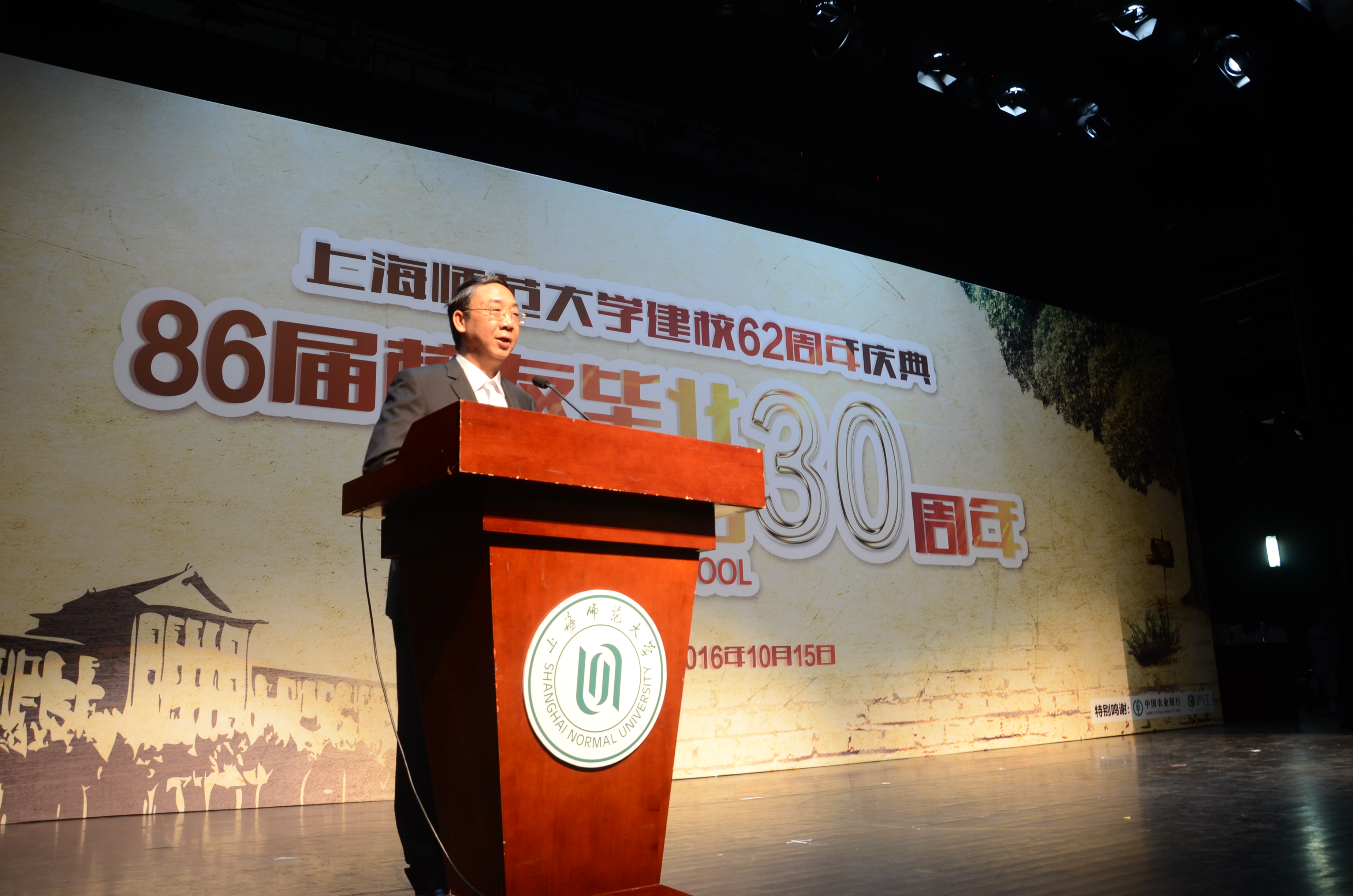 | 2016年10月15日,上海师范大学建校62周年校友返校日系列活动——86届校友毕业30周年返校聚会在徐汇校区霞棐剧院隆重举行。此次活动由校友会发起,得到了学院校友会,档案馆等众多部门的配合。800多名86届校友重返徐汇奉贤两校区,共话同窗深情。  校友会会长、上海师范大学校长朱自强出席活动并发表了重要讲话,首先他对各位校友的到来表示了热烈的欢迎,并向他们汇报了学校近年的工作成果和日后发展愿景,朱校长表示:校友会活动是传承传统,各位校是“师道永存”师大精神的传承者,祝校友从辉煌走向辉煌。 接着,老校友们观看了学校的宣传片,对于学校30年间翻天覆地的变化,他们感叹如月如梭,赞赏学校迅速发展,表示将会继续关注母校的发展。  此次活动得到上海农业银行徐汇支行的大力支持,朱自强校长感谢了农行对校友会所做出的贡献,并向支行行长马晓军赠送感谢牌。马行长回顾了农行与上海师范大学的合作,并表示以后会一如既往的支持和服务师大。沪江网通过网络对此次活动进行全球直播,有超过千名校友通过网络为母校留下了祝福。  方杰、王铁桦、徐俊、朱伟四位校友作为代表上台发言,他们通过回忆自己在师大的经历,表达对学校的感恩之情。  朱世昌、张俭峰、卢良梅三位老师作为教师代表上台发言,他们是86届毕业生的老师,有些老教授现在还坚守在师大的岗位上,继续发光发热。他们对学生表示了深切的怀念与期盼,老师最大的欣慰是听到学生的成绩。学生们也上台向他们赠送了鲜花,并献上深情的拥抱。熟悉的身影与音容让校友们回忆起了当年的校园生活,感慨不已。  还是当年的广播员,还是当年的广播稿,为老校友精心准备的《旧闻播报》节目引起了众多校友的共鸣。让师生们回忆起了1982年——1986年的学校生活,播音员的声音带校友们又重温了当年的青春岁月。  86届艺术系小合唱团为大家演唱了歌曲《You Raise Me Up》,唱给曾经的自己和曾经的师大,感谢母校对自己的养育和鼓舞。最后,声乐专业王瑞学校友用一首80年代的经典老歌《年轻的朋友来相会》将聚会引向高潮,音乐一响起,校友们即打起拍子,轻声合唱,引来阵阵喝彩。   86届校友聚会在温馨而热烈的气氛中缓缓拉上帷幕,聚会虽结束,但同窗情和美好的回忆将永远珍藏! (校友会 | |