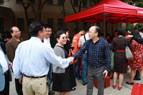 86届校友陆续在徐汇校区(霞棐剧院、第一教学楼)以及奉贤校区(迎宾楼、生环楼)相聚,并在学院特设的签名墙上签字、合影留念。校庆典礼上,学院86级学生代表为昔日的老师们献花致敬。下午校友们在分别在徐汇、奉贤教学楼教室举办了校友师生交流会,大家握手拥抱,热情沸腾,久违再见的激情高涨。一幅幅老照片,昔日的校园景色与青涩脸庞,让大家触景生情,心潮澎湃,大家相互分享着多年的工作状况、生活经历,不亦乐乎。随后校友们又参观了种质资源开发中心、图书馆、档案馆、教学楼等。