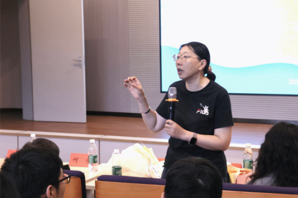分享结束后,两位老师与新生们展开了热烈的互动交流。“老师,大学期间除了专业课,还应该培养哪些能力?”“面对就业和考研的选择,我们该如何规划?” 面对新生的困惑,俞咏梅老师建议新生们首先要打好专业知识基础,随着学习的深入和对行业的了解,未来的发展方向自然会逐渐清晰。王旭卿副教授鼓励大家多尝试不同的实践机会,在实践中积累经验、不断反思,通过试错与总结找到最适合自己的成长路径。交流尾声,两位学生代表全体新生向老师们献上鲜花并致以节日的真挚祝福,现场洋溢着温馨与感动的氛围。