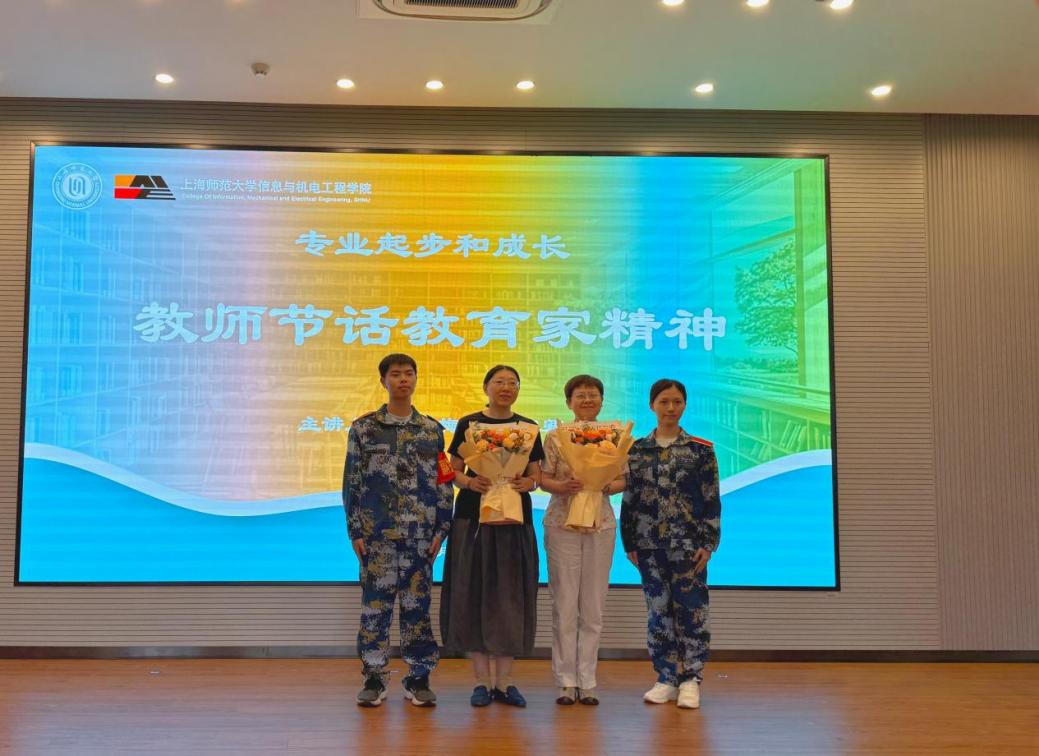 在第41个教师节来临之际,为帮助师范专业新生坚定教育理想、明确职业发展方向,9月10日下午,上海师范大学信机学院精心策划组织了“专业起步和成长——教师节话教育家精神”主题活动。活动特别邀请学院首届计算机师范专业毕业生、嘉定区教育学院退休教师俞咏梅,以及学院计算机科学与技术系王旭卿副教授担任主讲嘉宾。学院党委副书记、副院长何佳,学工办主任林峰,学院团委副书记王梓桐出席活动,100多名2025级计算机科学与技术(师范)专业新生现场参与。
