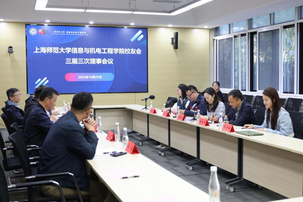 10月25日,信息与机电工程学院校友会三届理事会三次会议在徐汇校区会议中心3、4号会议室顺利召开。学院党委书记陈晓虹、学院副院长(主持工作)潘建国及三届理事会理事同步出席线上、线下会议。本次会议由学院党委副书记、副院长,学院校友会秘书长何佳主持。