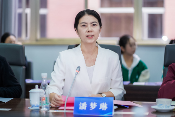 潘梦琳代表学院校友会第二届理事会作工作报告。她从组织建设、校友服务、实践育人三方面总结过去四年工作,表示校友会将持续优化服务体系、创新活动形式、聚焦长效建设,推动校友工作走深走实。