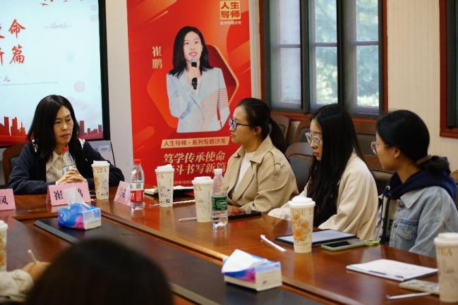 沙龙伊始,崔鹏老师点明此次交流的核心:人生需以向下扎根的积淀筑牢根基,以向前笃行的进取奔赴目标,而“稳定的内核”与“清晰的目标感”,正是支撑个人持续前行的关键。她结合自己从一名化学教师到学校管理者的成长经历启发同学们:唯有明确方向、深耕自身核心能力,才能在学业与职业道路上稳步迈进。