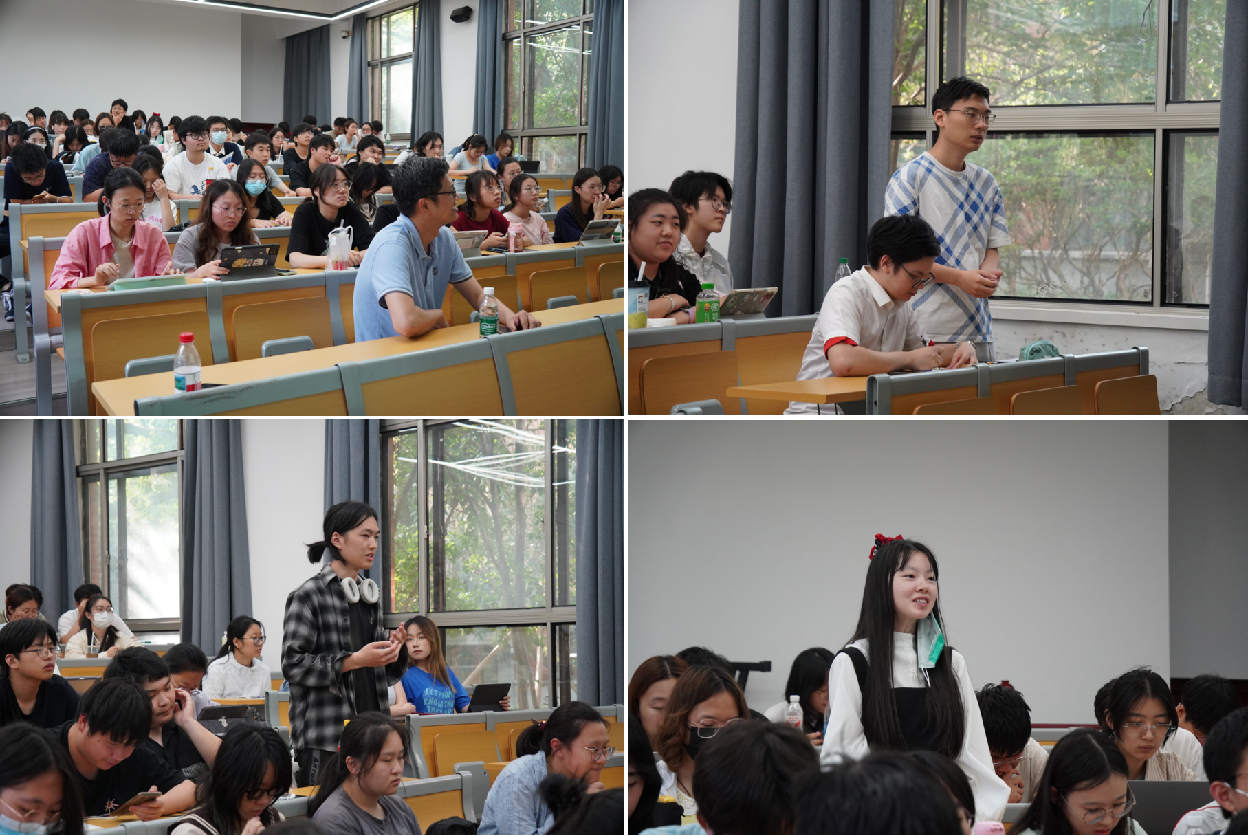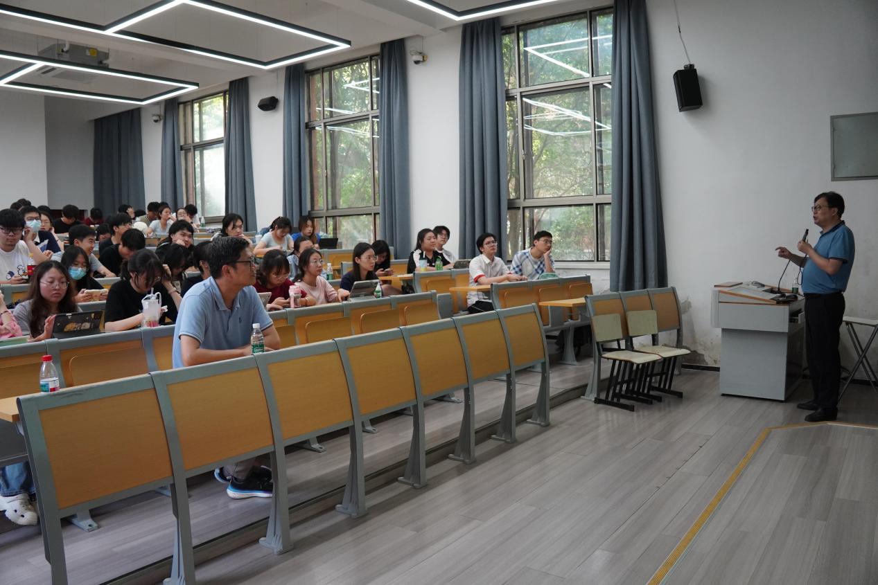 最后林校长寄语师范生,在大学阶段要“吃透”物理概念,理解其引入意义、定义、单位及与其他概念的联系区别,建立系统化的认知体系。同时,要不断“涵养自我”,结合自身特点明确发展方向。他形象地将教师分为四类:教学水平与研究水平俱高的“名师”;研究水平高但教学水平一般的“学者型”;教学水平高但疏于研究的“工匠型”;以及两者皆弱的淘汰对象。他鼓励同学们对标思考,早做规划,在两条轨道上都努力寻找特色点,做深做精,并在讲座的最后与在坐的研究生和本科生进行了交流。