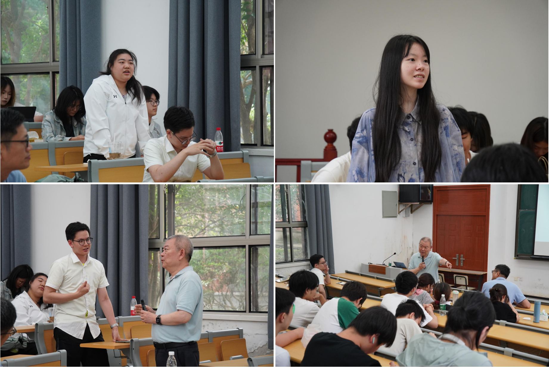 在互动环节中,师生们围绕实验教学的核心问题展开了热烈讨论。王铁桦老师针对"合作学习与独立操作的平衡"问题,提出角色轮换、分阶段任务和发展性评价的策略,强调实验教学要"练真功"而非"演剧本"。对于数字化实验的争议,他以牛顿第二定律实验为例,主张传统与数字手段互补,形成递进式教学。在实验设计方面,他提倡以真实问题驱动、设置阶梯式任务并接纳开放性结论,让学生"像科学家一样思考"。面对验证性实验的革新,王老师建议通过数据拟合发现规律和反向设问等方式,将验证过程转化为思维训练。最后他总结指出,实验教学改革需要持续探索,在理论与实践中寻找动态平衡,让每次提问和尝试都成为接近科学教育本质的重要一步。整场互动既有具体方法的指导,又蕴含深刻的教育哲学,为师生们提供了宝贵的教学启示。
