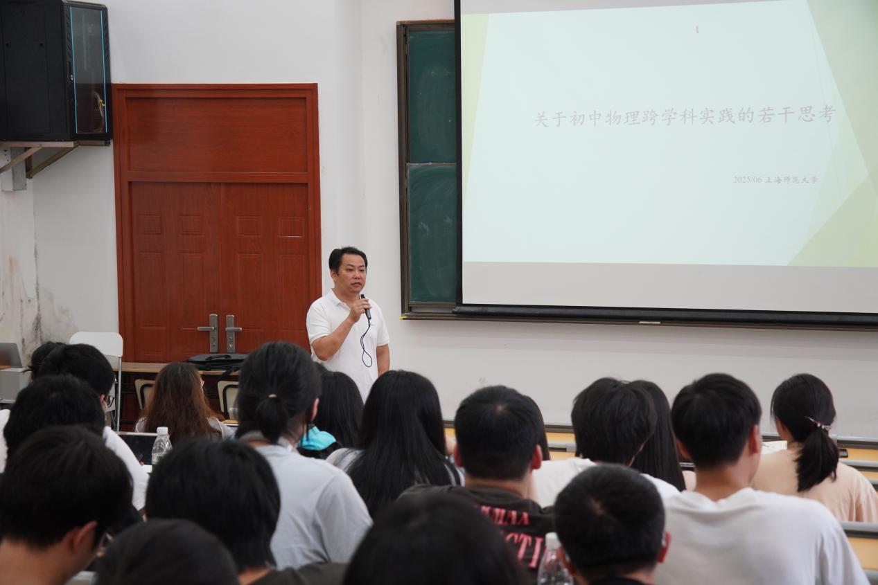 2025年6月25日13:30,上海师范大学数理学院于一教109教室成功举办第三十三期物理教师教育行业报告及前沿讲座。本次活动特邀同济大学特聘教授、同济科技中学校长、上海市高考物理学科命题组专家朱臻老师担任主讲嘉宾。数理学院2023级物理学(师范)全体本科生及部分物理系教师聆听了朱臻校长的精彩报告,讲座由学院党委副书记、副院长林恺主持。