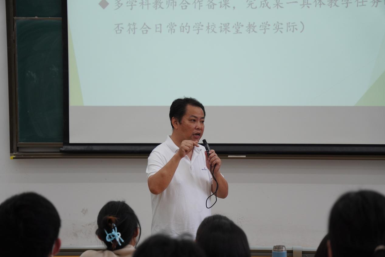 在活动的互动环节,朱臻校长与同学们进行了深入的交流。面对同学们积极的提问,朱臻校长着重分享了自己的思考。他指出,跨学科实践是培养复合型人才的重要途径,但如何有效落地至关重要。他结合自己多年在中学教学一线的观察与经验,特别是当前中学教育在课程设置和评价体系方面的现状,详细阐述了自己的观点:首先,跨学科项目的选择与设计,必须充分考虑参与学生的认知发展阶段和能力水平,确保项目的挑战性与可行性相平衡,避免“拔苗助长”或“食之无味”。其次,在热情拥抱跨学科的同时,绝不能忽视基础学科的教学质量和必要的考试要求。他强调,跨学科实践应服务于提升学生综合素养,而不是与现有教育体系脱节,如何在创新与规范间找到最佳结合点,是每一位教育工作者都需要深思的问题。朱臻校长的见解为同学们打开了新的思路。