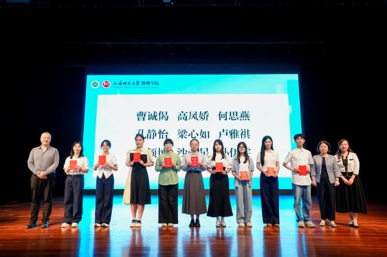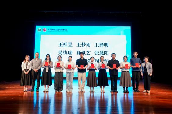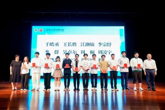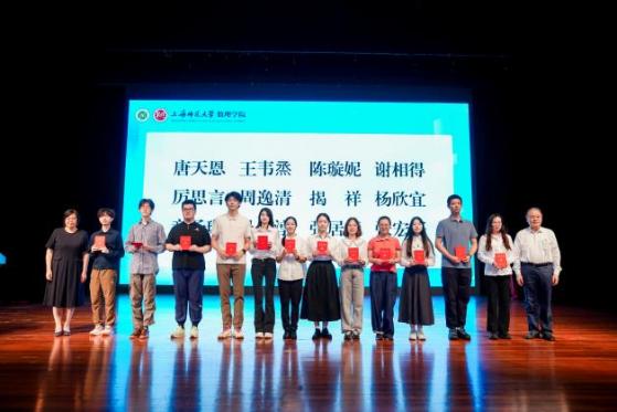 随后,褚君浩院士与袁雯校长共同为“褚君浩院士奖学金”获得者颁奖,激励学子在科研道路上勇攀高峰;“焕昌”奖学金捐设者徐拥军校友、学院党委书记唐洁、校友会基金会秘书长陈燕则为2025年“焕昌杯”师范生技能大赛的获奖学生颁授荣誉,彰显师范精神的接续传承。这一环节生动体现了学院在“卓越师范生”与“应用创新人才”一体两翼培养格局下的育人成效,展现了数理学子在学术探索与教学实践双轨道上的卓越成长与综合素养。